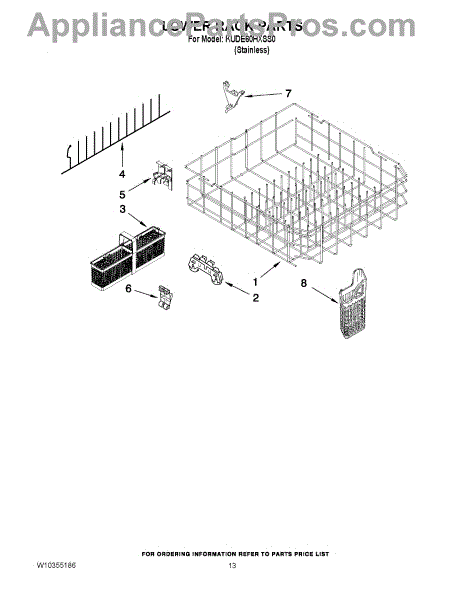 Parts for Kitchenaid KUDE60HXSS0: 10 - Lower Rack Parts