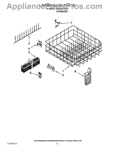 Parts for Kitchenaid KUDE60HXSS4: 10 - Lower Rack Parts