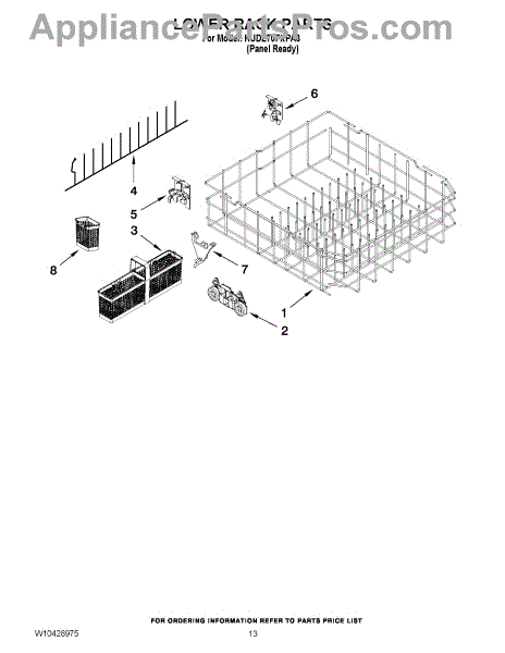 Parts for Kitchenaid KUDE70FXPA3: 10 - Lower Rack Parts