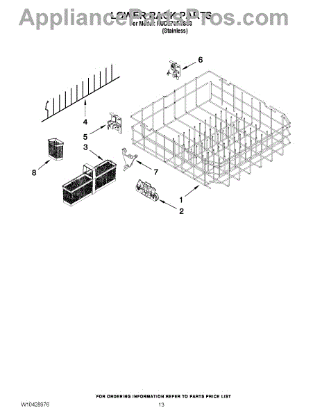 Parts for Kitchenaid KUDE70FXSS3: 10 - Lower Rack Parts