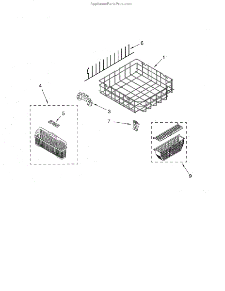 This dishrack organizes and supports dishes inside the dishwasher during wash cycles. Replacing a damaged rack restores smooth loading, keeps items upright, and helps prevent rust stains or snags from broken tines or flaking rack coating.
