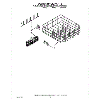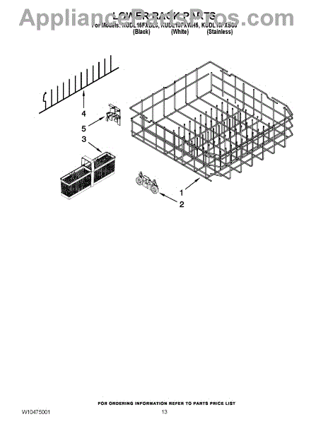 Parts for Kitchenaid KUDL15FXBL5: 10 - Lower Rack Parts
