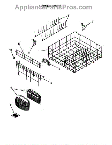 Note: There are four wheel assemblies includes with this rack. The flexible tine rows are not included. This is a lower dishrack assembly for a dishwasher. This part holds the dishes during the washing and drying cycles. Note that this is only the lower dishrack assembly and the upper dishrack assembly is sold separately. Over time, the lower dishrack assembly may begin to rust or the coating may wear off. It is also possible that sections of the part could break due to degradation over time. If this happens, the entire lower dishrack assembly will need to be replaced. The lower dishrack assembly is compatible with dishwashers that are manufactured by the Kenmore, KitchenAid, and Whirlpool brands. It comes straight from the manufacturer and is sold individually. It's a genuine, high-quality, and durable OEM part.