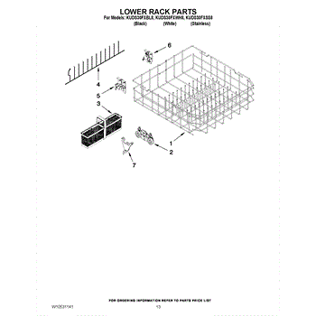 Parts for Kitchenaid KUDS30FXBL8: 10 - Lower Rack Parts