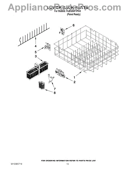 Parts for Kitchenaid KUDS30FXPA0: 10 - Lower Rack Parts
