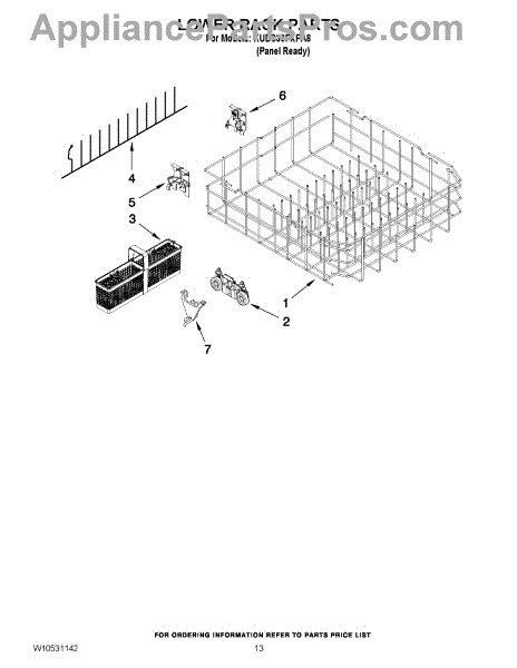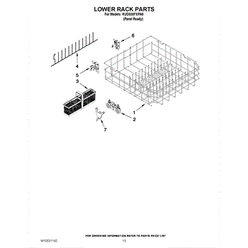 Parts for Kitchenaid KUDS30FXPA8: 10 - Lower Rack Parts