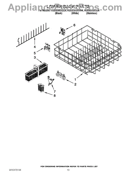 Parts for Kitchenaid KUDS30SXBL4: 10 - Lower Rack Parts