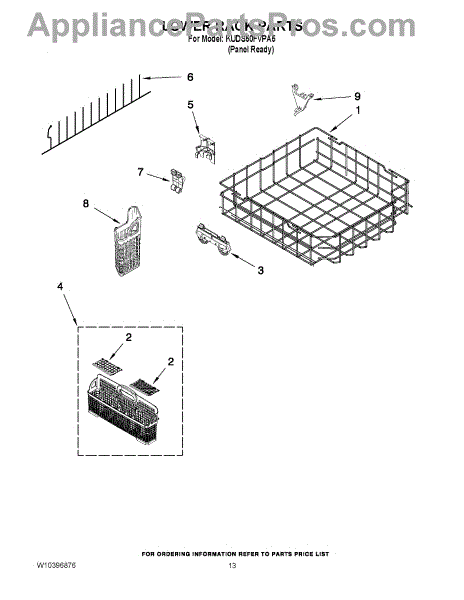 Parts for Kitchenaid KUDS50FVPA5: 10 - Lower Rack Parts