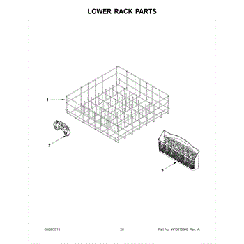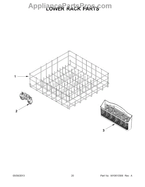 Roller and mount assembly for dishwasher racks. Allows smooth sliding for loading and unloading. Replace if worn, cracked, broken, or missing.