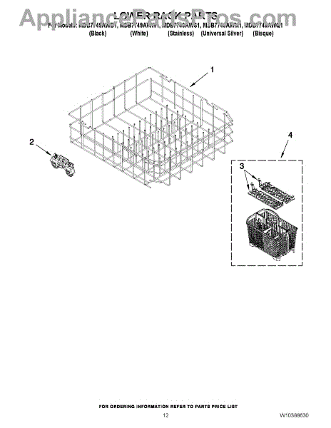 Parts for Maytag MDB7749AWW1: 10 - Lower Rack Parts