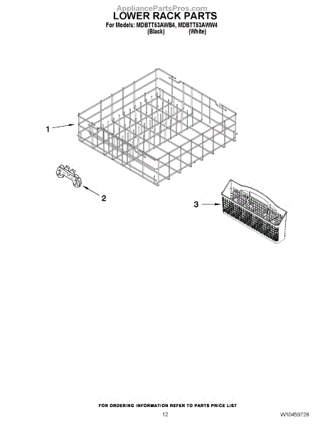 Parts for Maytag MDBTT53AWB4: 10 - Lower Rack Parts