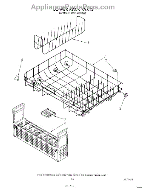 Parts for Whirlpool 4KUDA220TW2: 12 - Lower Rack Parts