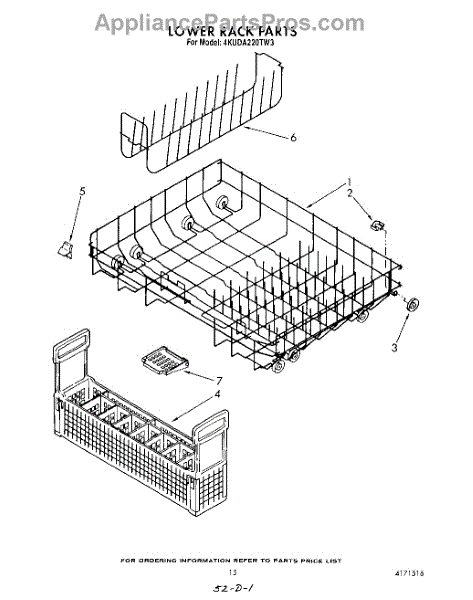Parts for Whirlpool 4KUDA220TW3: 12 - Lower Rack Parts