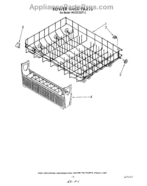Parts for Whirlpool 4KUDC220T3: 12 - Lower Rack Parts