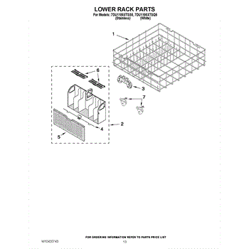 Parts for Whirlpool 7DU1100XTSQ5: 11 - Lower Rack Parts