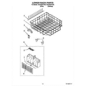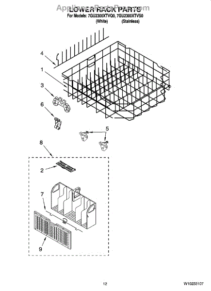 Parts for Whirlpool 7GU2300XTVS0: 10 - Lower Rack Parts