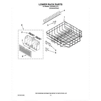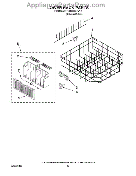Parts for Whirlpool 7GU3200XTVY2: 11 - Lower Rack Parts