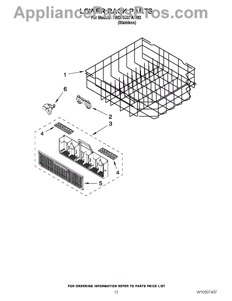 Parts for Whirlpool 7WDF530PAYM3: 10 - Lower Rack Parts
