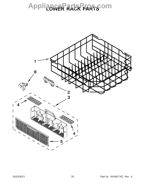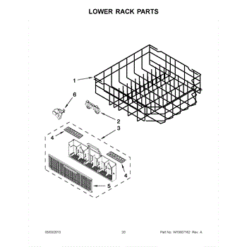 Parts for Whirlpool 7WDF530PAYM5: 10 - Lower Rack Parts