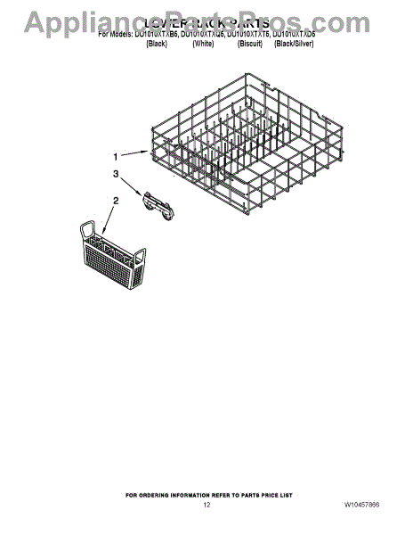 Parts for Whirlpool DU1010XTXQ5: 10 - Lower Rack Parts