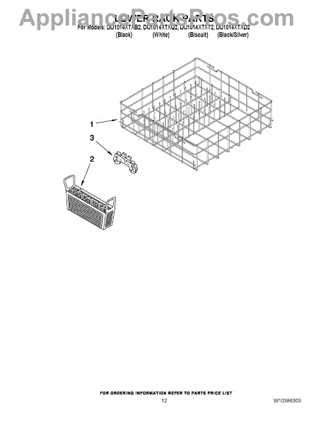 Parts for Whirlpool DU1014XTXB2: 10 - Lower Rack Parts