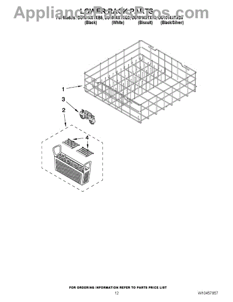 Parts for Whirlpool DU1014XTXT5: 10 - Lower Rack Parts