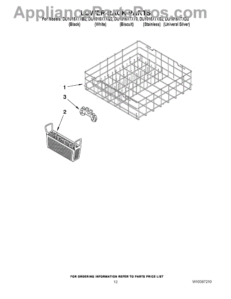 Parts for Whirlpool DU1015XTXS2: 10 - Lower Rack Parts