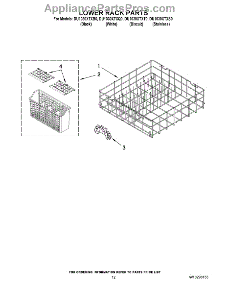 Parts for Whirlpool DU1030XTXT0: 10 - Lower Rack Parts