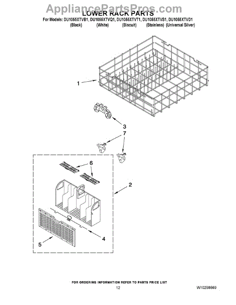 Parts for Whirlpool DU1055XTVB1: 10 - Lower Rack Parts
