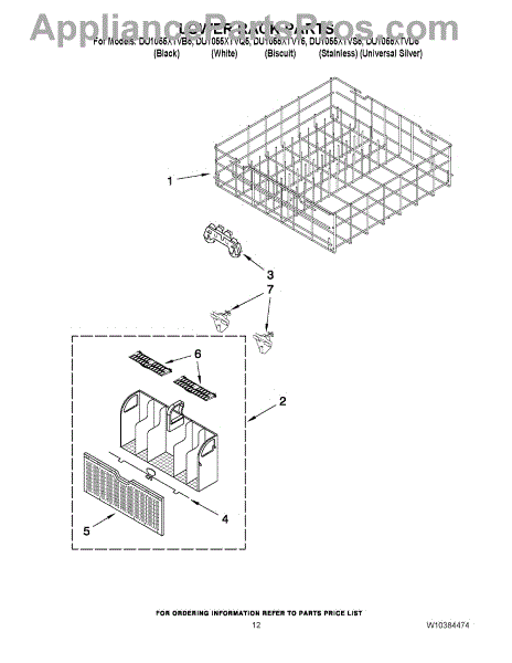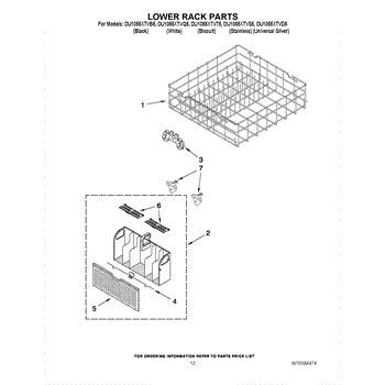 Parts for Whirlpool DU1055XTVB5: 10 - Lower Rack Parts