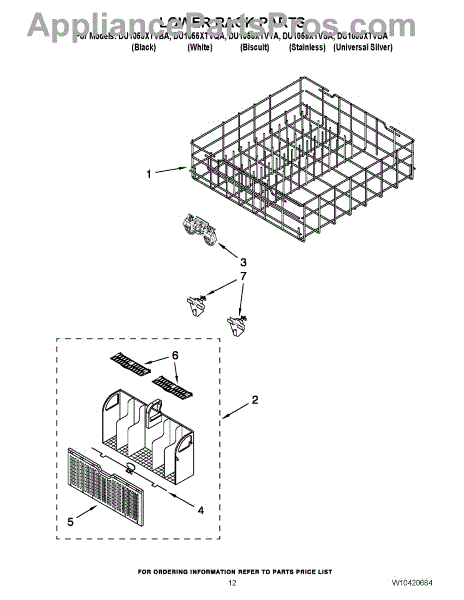 Parts for Whirlpool DU1055XTVQA: 10 - Lower Rack Parts