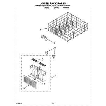 Parts for Whirlpool DU1101XTPB9: 11 - Lower Rack Parts, Optional Parts (Not Included) Parts