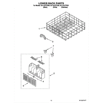 Parts for Whirlpool DU1101XTPBB: 10 - Lower Rack Parts