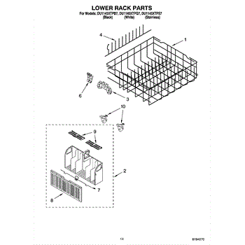 Parts for Whirlpool DU1145XTPB7: 11 - Lower Rack Parts, Optional Parts (Not Included) Parts