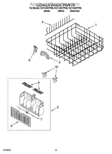 Parts for Whirlpool DU1145XTPS9: 11 - Lower Rack Parts, Optional Parts (Not Included) Parts