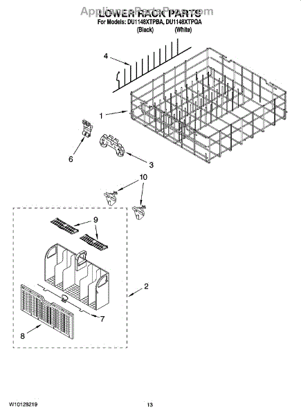 Parts for Whirlpool DU1148XTPBA: 11 - Lower Rack Parts, Optional Parts (Not Included) Parts