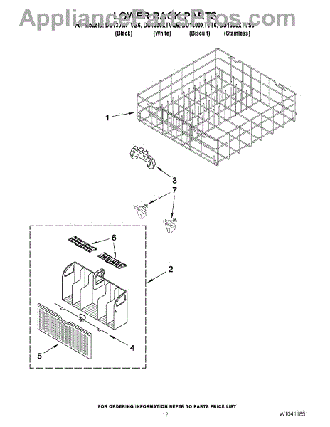Parts for Whirlpool DU1300XTVB6: 10 - Lower Rack Parts