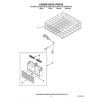 Parts for Whirlpool DU1300XTVQ5: 10 - Lower Rack Parts