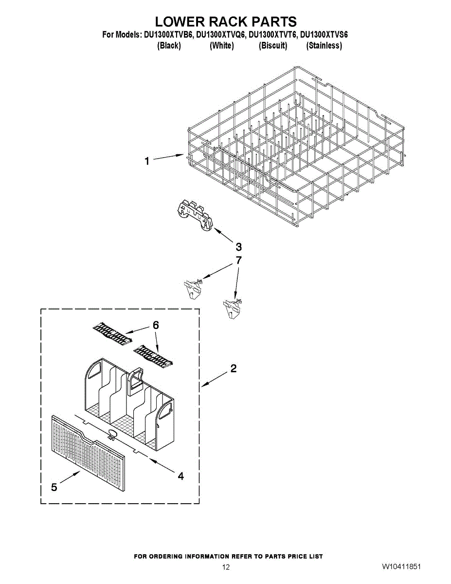 Parts for Whirlpool DU1300XTVQ6: 10 - Lower Rack Parts