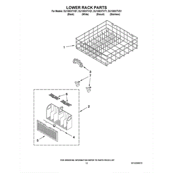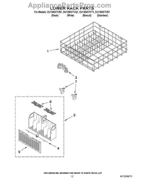 Parts for Whirlpool DU1300XTVS1: 10 - Lower Rack Parts