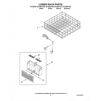 Parts for Whirlpool DU1300XTVS3: 10 - Lower Rack Parts