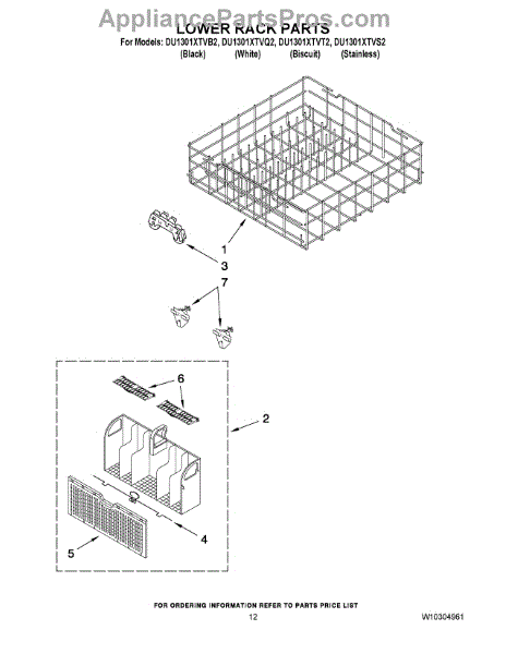 Parts for Whirlpool DU1301XTVB2: 10 - Lower Rack Parts