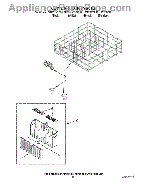 Parts for Whirlpool DU1301XTVB4: 10 - Lower Rack Parts