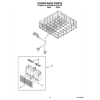 Parts for Whirlpool DU1301XTVQ0: 10 - Lower Rack Parts