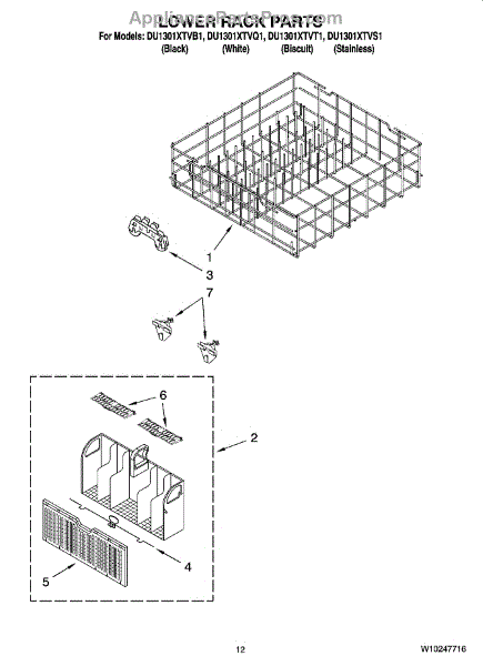 Parts for Whirlpool DU1301XTVQ1: 10 - Lower Rack Parts