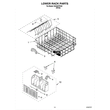 Parts for Whirlpool DU640XTKQ0: 11 - Lower Rack Parts