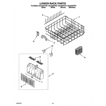 Secures silverware basket to dishwasher rack to prevent tipping during wash cycles. Replace if clip is cracked, broken, or missing to keep basket stable.