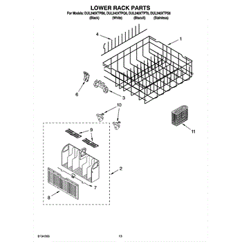 Replacement silverware basket for dishwasher. Holds utensils securely during wash cycles. Replace if broken, cracked, or latches won't stay closed.