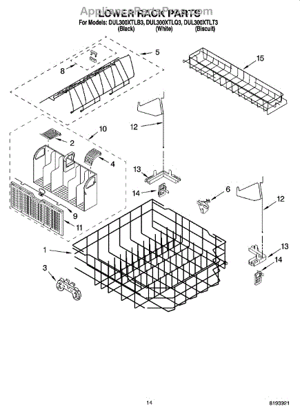 Parts for Whirlpool DUL300XTLT3: 11 - Lower Rack Parts