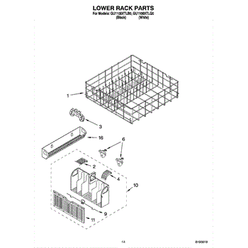 Parts for Whirlpool GU1108XTLB0: 11 - Lower Rack Parts